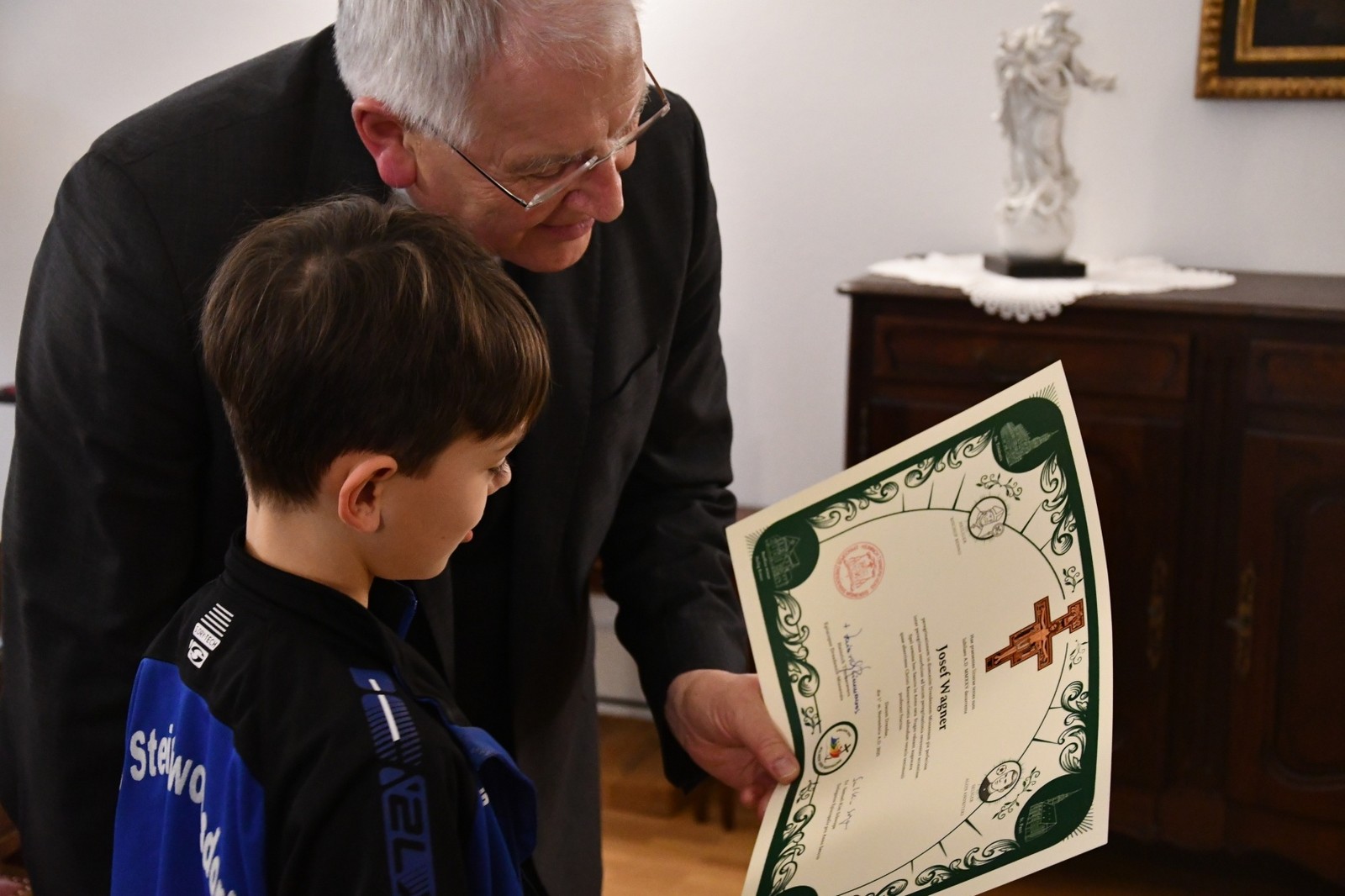 Dresden. Zum Heiligen Jahr waren alle Menschen eingeladen, sich auf den Weg zu machen und bei Besuchen von Wallfahrtskirchen und der Heiligen Pforten als Andenken Pilgerstempel in einem Wallfahrtsheft zu sammeln. Ab vier Stempeln konnten Interessenten eine Pilgerurkunde des Bischofs erhalten. Rund einhundert dieser Zertifikate wurden so das Jahr über verschickt. Die vermutlich letzten Pilgerurkunden dieses Jahres hat Bischof Heinrich Timmerevers nun persönlich übergeben.