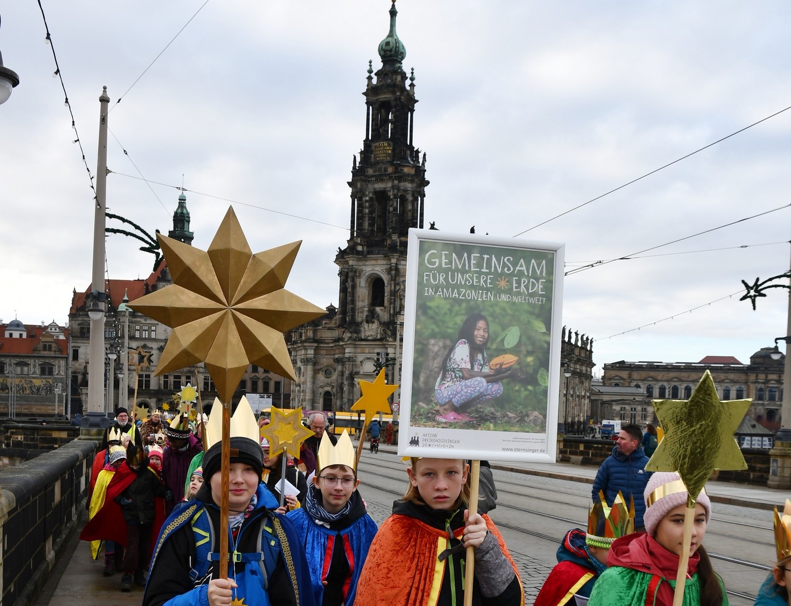 Treffpunkt der jungen Könige ist zuvor um 9.45 Uhr in der Dresdner Kathedrale, wo sie von Bischof Heinrich Timmerevers im Rahmen einer kurzen Andacht mit dem Segen auf ihren Weg zur Staatskanzlei ausgesandt werden. Gegen 10.30 Uhr machen sich die Kinder und Jugendlichen dann auf ihren Weg über die Augustusbrücke Richtung Staatskanzlei. Vor Ort werden Sternsinger aus der Pfarrei Heilige Mutter Teresa Chemnitz das Programm federführend gestalten.