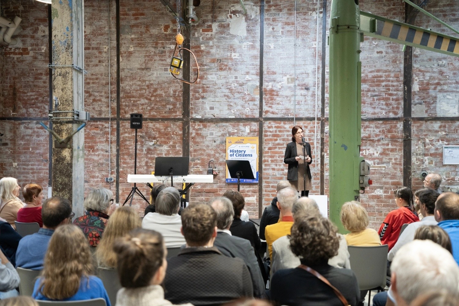 Chemnitz. Mit rund 200 Besucherinnen und Besuchern – darunter viele am Projekt beteiligte Schülerinnen und Schüler sowie Seniorinnen und Senioren – war die Vernissage der Ausstellung History of Citizens am 9. November im Garagen-Campus ein großer Erfolg – die Stühle wurden gegen Ende knapp, die Atmosphäre war lebendig, neugierig und herzlich.
