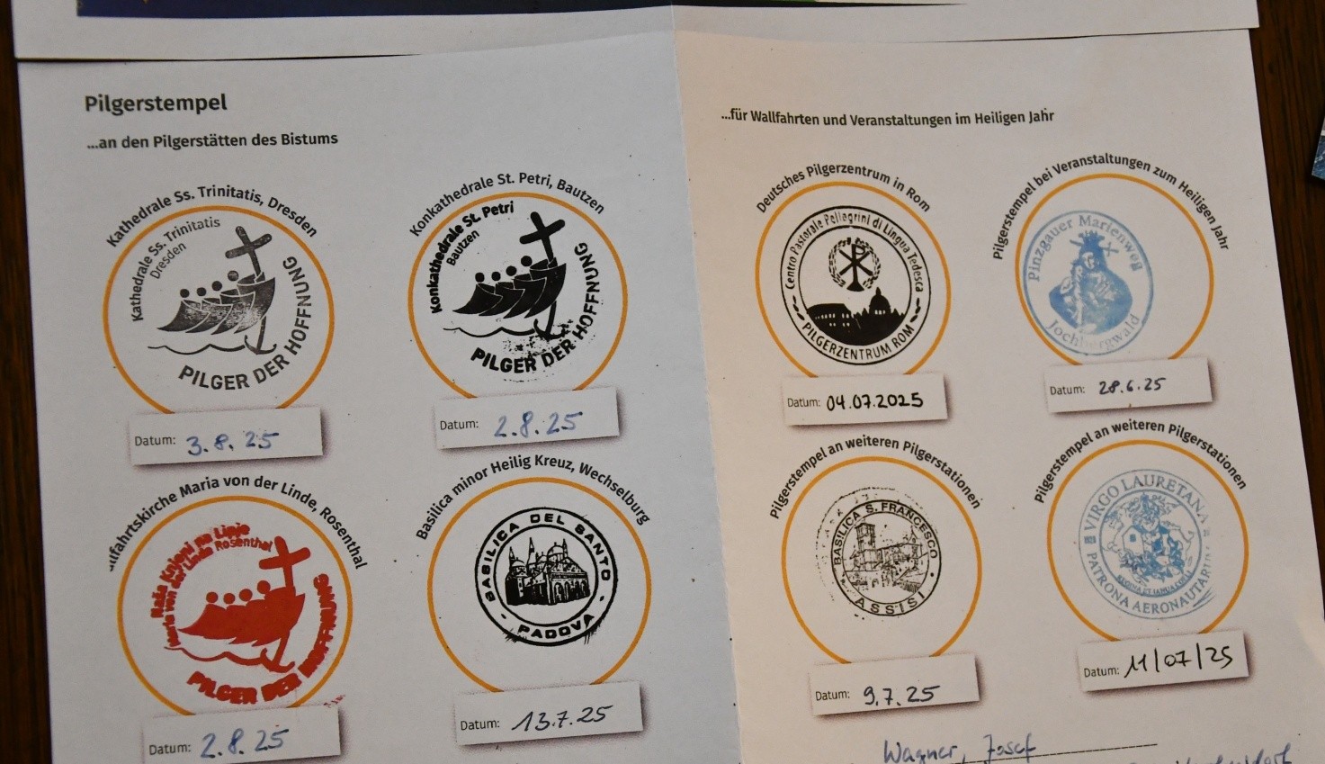 Zahlreiche Stempel im Pilgerheft