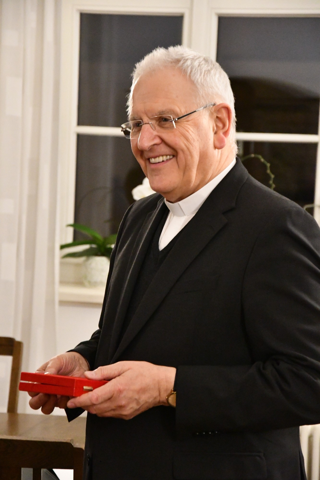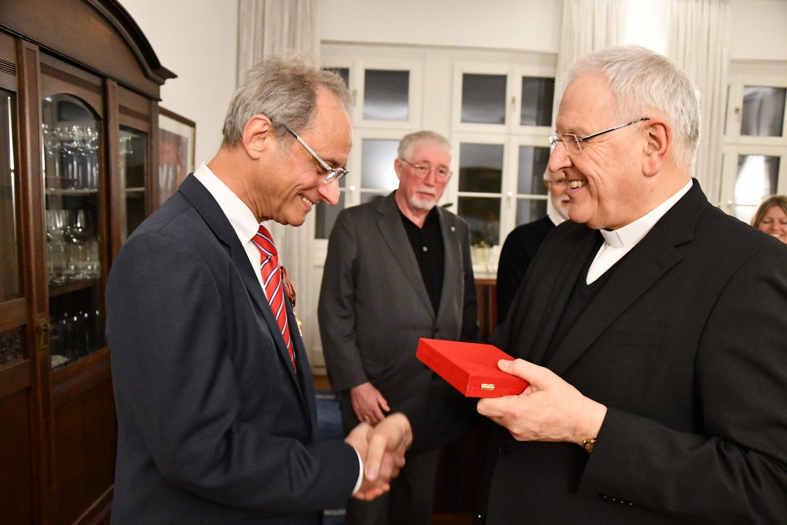 Dresden. Ordinariatsrat Christoph Bernhard, langjähriger Leiter der Hauptabteilung Schulen und Hochschulen des Bischöflichen Ordinariats, ist am vergangenen Wochenende feierlich von Bischof Heinrich Timmerevers mit dem päpstlichen Silvesterorden ausgezeichnet worden, einem der höchsten päpstlichen Laienorden. Bischof Timmerevers übergab die Auszeichnung im Anschluss an eine Sitzung des Vermögensverwaltungsrats im Haus der Kathedrale in Dresden.