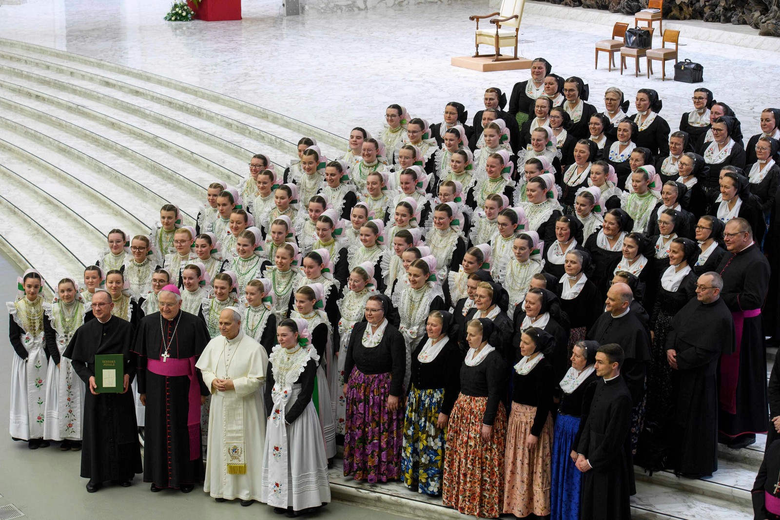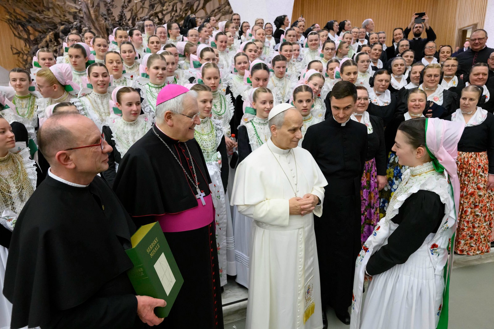 Rom. Gleich dreimal hatte Bischof Heinrich Timmerevers am Mittwoch, 11. Februar, die Gelegenheit zur persönlichen Begegnung mit Papst Leo XIV. im Vatikan – in einer Privataudienz, bei der Generalaudienz sowie bei einer Begegnung der Wallfahrtsgruppe sorbischer Druschki unseres Bistums Dresden-Meißen mit dem Heiligen Vater. Bischof Timmerevers begleitete die Wallfahrerinnen, die sich vom 8. bis 14. Februar auf den Weg in die Ewige Stadt gemacht hatten. Sechzig junge Sorbinnen im Alter ab 14 Jahren waren dabei gemeinsam mit vierzig Ankleidefrauen und mehreren Priestern unterwegs. Ziel der Pilgerreise war das Gebet an den Gräbern der Apostel Petrus und Paulus, die Vertiefung des Glaubens im Zentrum der Weltkirche sowie die Teilnahme an der Generalaudienz mit dem Heiligen Vater.
