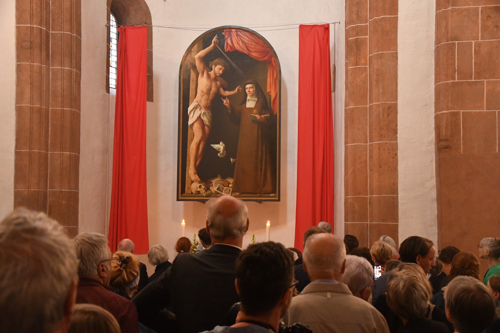 Seit Mai 2025 ist das Gotteshaus um ein Kunstwerk reicher: Der Leipziger Künstler Michael Triegel - bekannt als "Papstmaler" von Papst Benedikt XVI. - hat ein Gemälde für die Wallfahrtskirche geschaffen, das im Fernsehgottesdienst vorgestellt wird. Das Bild hat seinen Platz über dem Seitenaltar der Nordapsis gefunden und ist der Hl. Edith Stein (1891-1942) gewidmet, deren Gedenktag am 9. August ist.