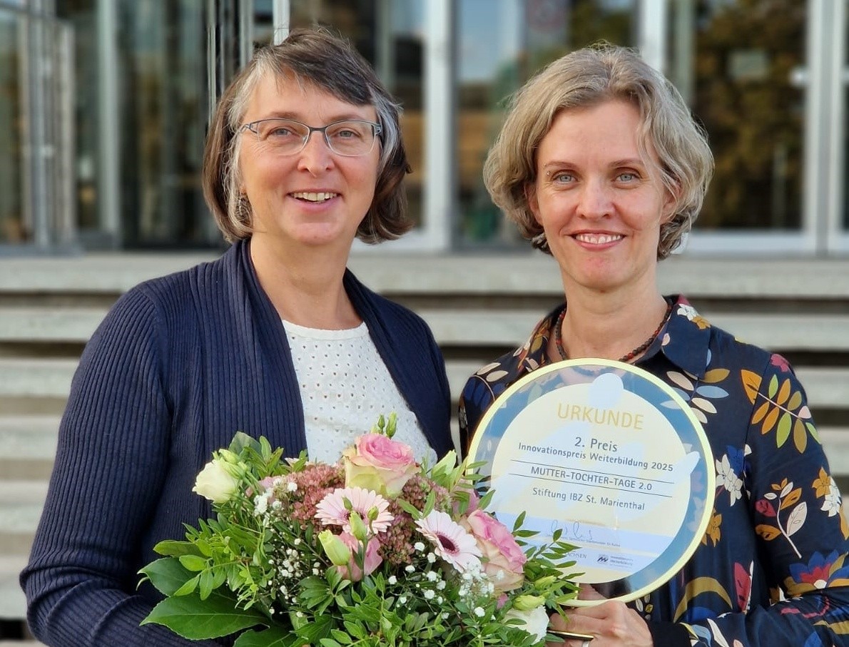 Dresden/Ostritz. Große Anerkennung für engagierte Bildungsarbeit: Anja und Elisabeth Salditt, aktive MFM-Referentinnen („My Fertility Matters“) im Gebiet der Diözese Dresden-Meißen, wurden für ihr Konzept „Mutter-Tochter-Tage 2.0“, das vom IBZ St. Marienthal angeboten wird, mit dem zweiten Platz des Innovationspreises Weiterbildung des Freistaates Sachsen ausgezeichnet. Die Jury würdigte bei der Preisverleihung im Sächsischen Landtag in Dresden insbesondere den zeitgemäßen Ansatz, in sensiblen Lebensphasen wie Pubertät und Wechseljahre Räume für Beziehung, Austausch und Lernen zu eröffnen.