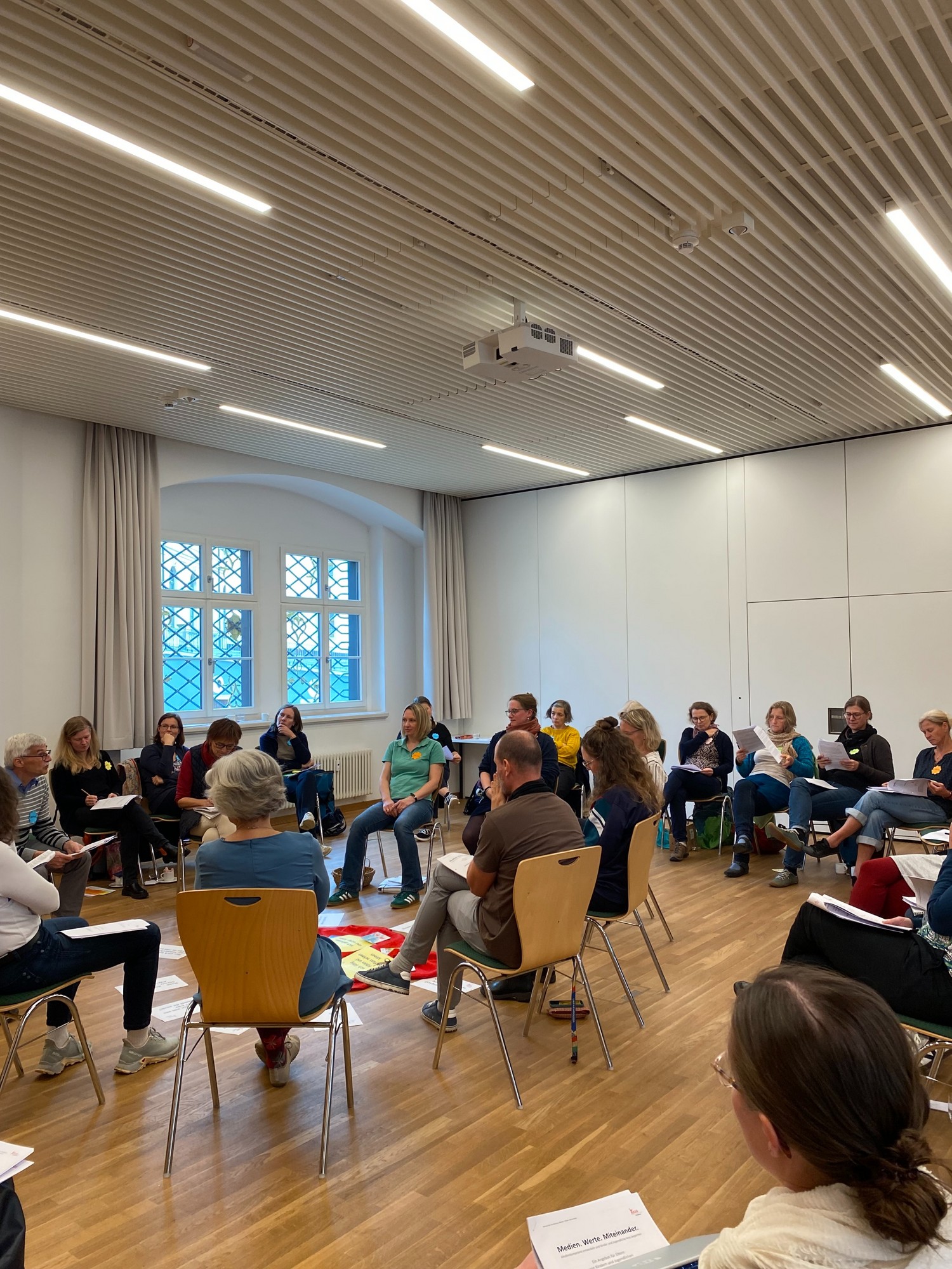 Ein besonderer Dank galt Martin Raschke, Geschäftsführer des FDK in den Bistümern Dresden-Meißen und Görlitz, für sein langjähriges Engagement und seine große Hilfsbereitschaft. Ein zentrales Thema des Tages war der Umgang mit modernen Medien – eine Herausforderung, die Eltern heute besonders beschäftigt. Viele Mütter und Väter wünschen sich Sicherheit und Orientierung in der digitalen Welt ihrer Kinder. Passend dazu hat Kess erziehen ein neues Medienmodul entwickelt: „Medien. Werte. Miteinander. Medienkompetenz entwickeln und Kinder und Jugendliche kess begleiten.“ Dieses Modul richtet sich an Eltern von Kindern zwischen 3 und 15 Jahren und vermittelt fundiertes Wissen, pädagogische Hilfestellungen und praktische Handlungssicherheit. Im Workshop setzten sich die Teilnehmenden kreativ damit auseinander, indem sie abwechselnd Passagen aus dem neuen Manual bearbeiteten – einmal in der Rolle von Referierenden, dann wieder aus Sicht von Eltern. Dabei kamen auch persönliche Medienerfahrungen zur Sprache, was zu lebhaften und bereichernden Diskussionen führte.