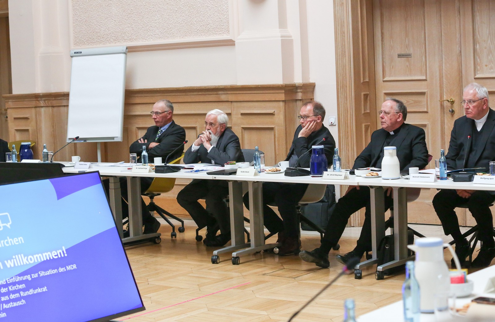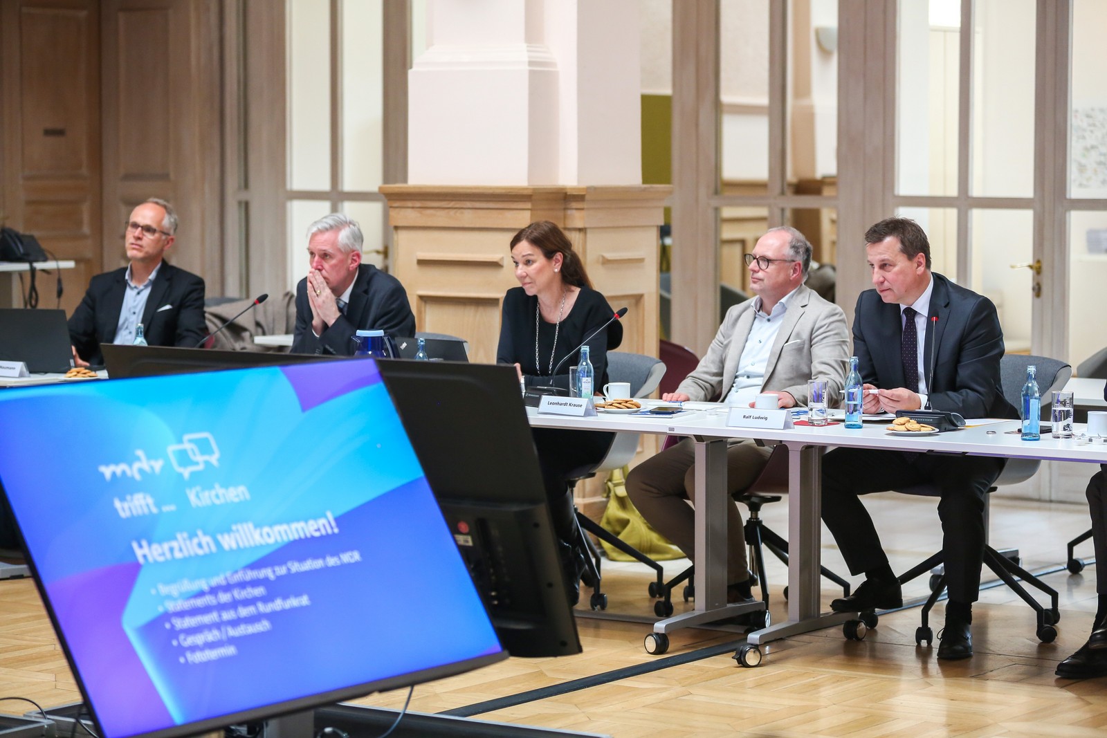 Im Austausch mit den Direktorinnen und Direktoren des MDR und Programmverantwortlichen aus der Hauptredaktion Gesellschaft schilderten die leitenden Geistlichen und Senderbeauftragten ihre Eindrücke zur unabhängigen redaktionellen Berichterstattung über Kirche und Religion sowie zur Zusammenarbeit bei den Drittsendezeiten für Gottesdienstübertragungen und Andachtsimpulse, die im MDR-Staatsvertrag für die Kirchen vorgesehen sind. Link: Gottesdienste und geistliche Worte im MDR | MDR.DE