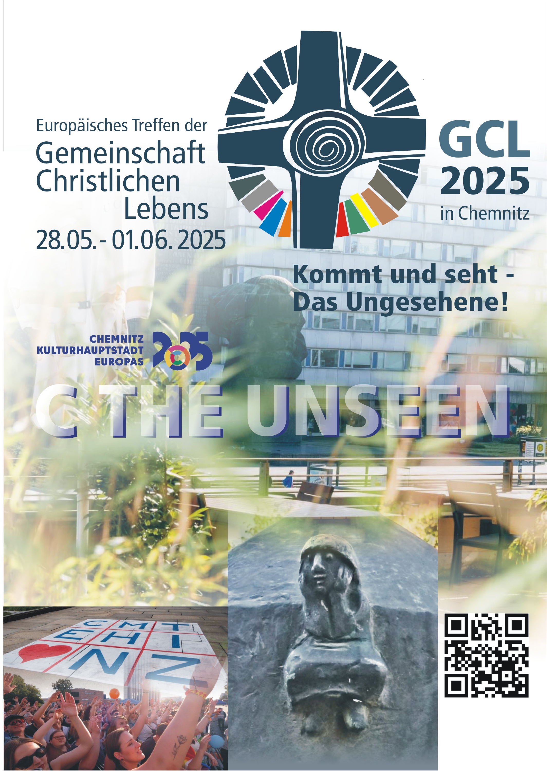 Deshalb lädt die GCL-Regionalgemeinschaft Dresden-Meißen/Görlitz unter dem Titel „Kommt und seht – Das Ungesehene!“ vom 28. Mai bis 1. Juni 2025 GCL-Mitglieder und Interessierte aus der Region, aus ganz Deutschland und Europa ein, im Kulturhauptstadtjahr nach Chemnitz zu kommen: um Neues und Ungesehenes zu entdecken – in der Begegnung mit Gott, miteinander und mit der Stadt. Familien sind ebenfalls herzlich willkommen.