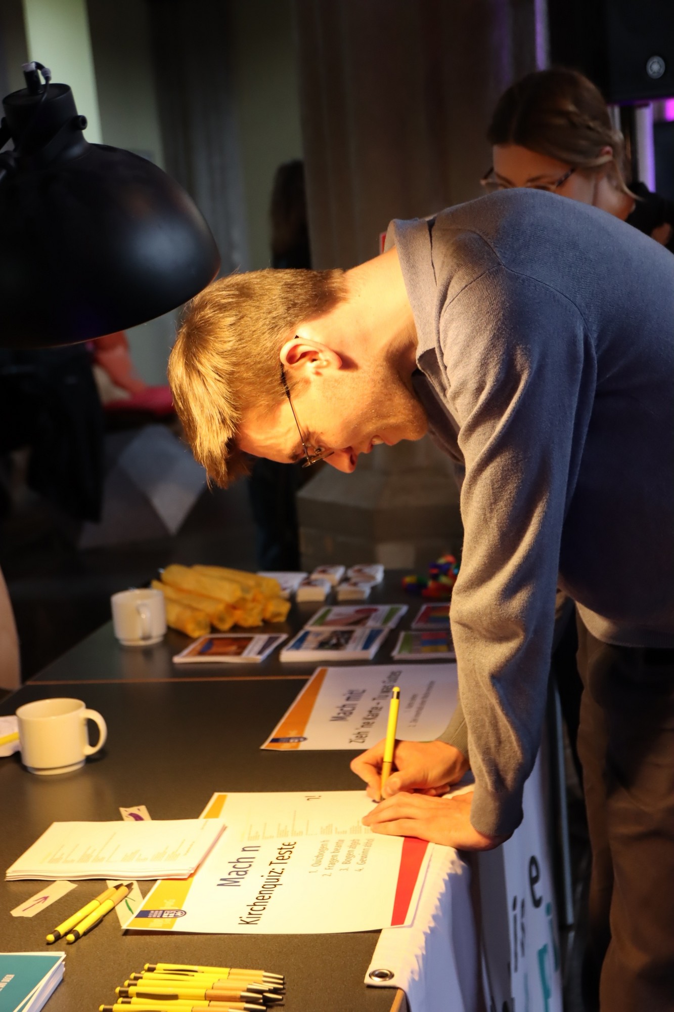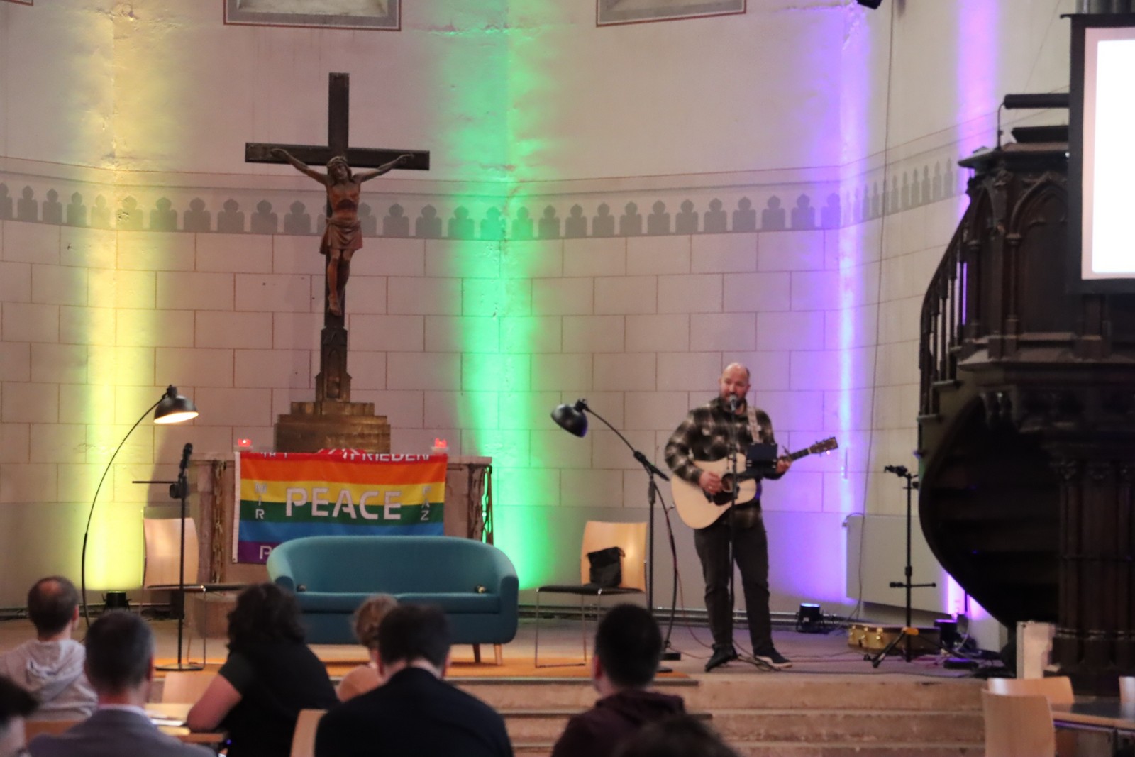Die pax Friedenskirche wurde für diesen Nachmittag in einer besonders offenen, persönlichen Atmosphäre gestaltet. Bei Kaffee und Snacks kamen die Teilnehmenden miteinander ins Gespräch, knüpften Kontakte und tauschten Erfahrungen aus. Durch das Bühnenprogramm führten die Moderatoren Maxi Konang und Daniel Heinze. Musikalisch begleitet wurde die Veranstaltung vom Leipziger Liedermacher Sebastian Caspar.