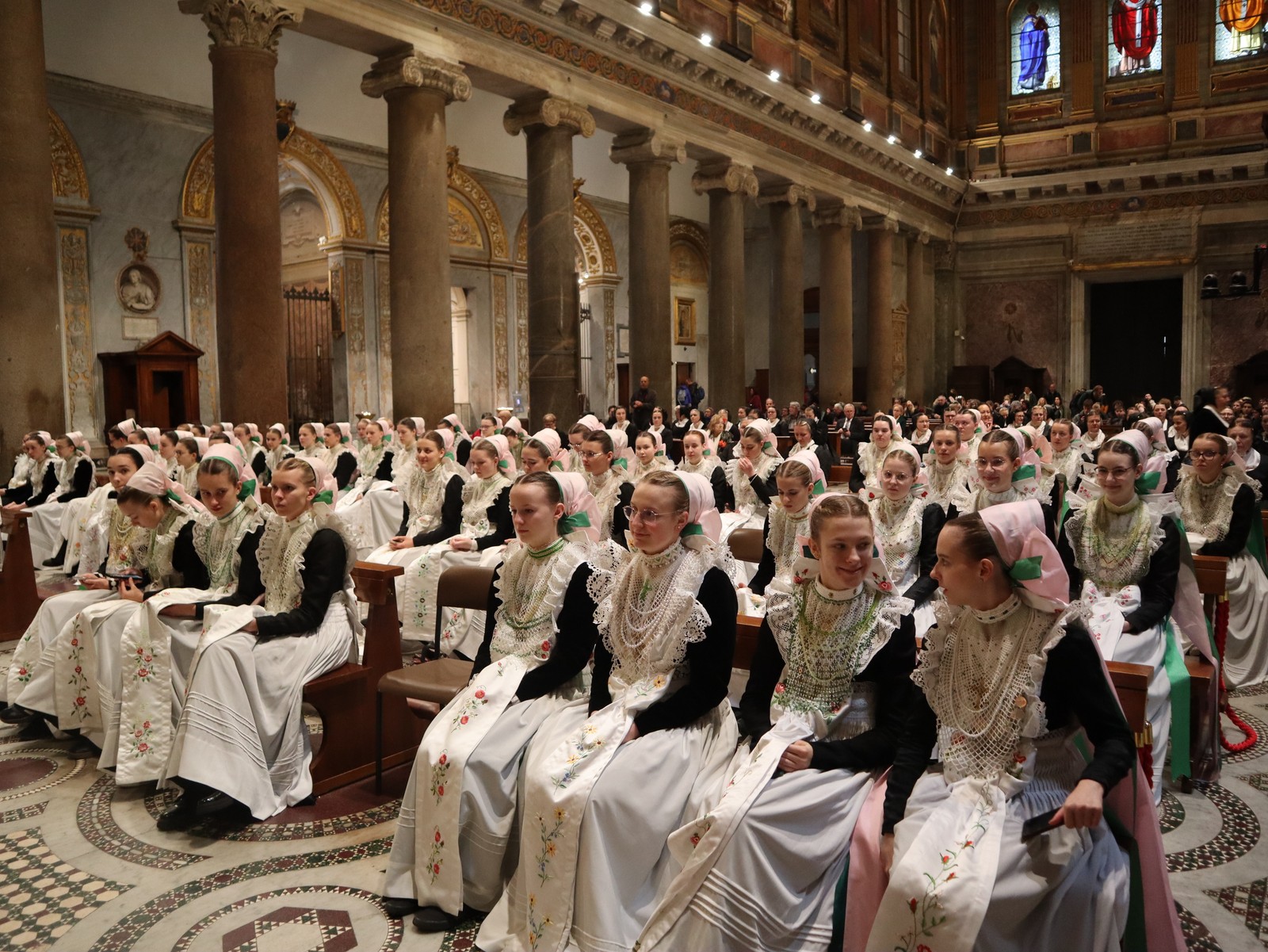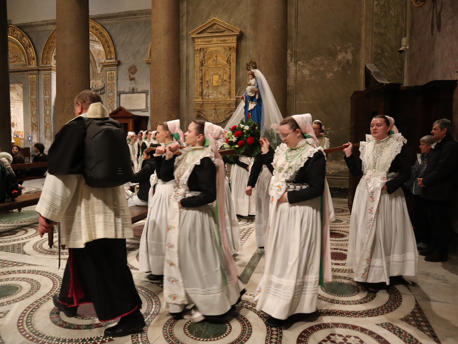 Rosenthal/Rom. Vom 8. bis 14. Februar 2026 hat sich eine große Gruppe sorbischer Druschki auf Wallfahrt nach Rom begeben. Druschki (sorbisch: družki = Brautjungfern) sind junge, unverheiratete Mädchen, die in traditioneller, kunstvoll bestickter Festtagstracht eine zentrale Rolle im sorbischen Brauchtum einnehmen und beispielsweise bei Wallfahrten die Marienfiguren tragen. Insgesamt nahmen sechzig junge Sorbinnen im Alter ab 14 Jahren an der Pilgerreise teil, begleitet von vierzig Ankleidefrauen sowie drei Priestern. Ziel der Wallfahrt war der Besuch der Gräber der Apostel Petrus und Paulus sowie die Teilnahme an der Generalaudienz mit dem Heiligen Vater am 11. Februar auf dem Petersplatz. Als eindrucksvollen Moment und eine Erfahrung lebendiger Glaubensgemeinschaft beschrieb eine Teilnehmerin die Begegnung.