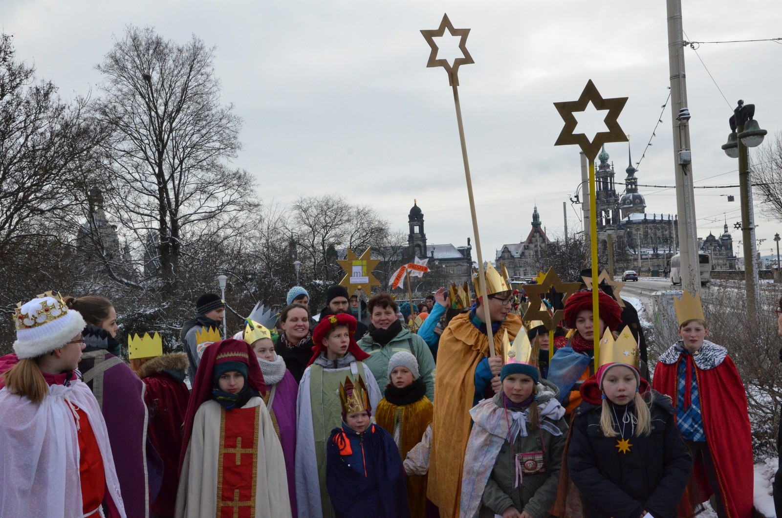 Anders als auf diesem Foto aus dem Jahr 2017 können die Sternsinger in diesem Jahr Corona-bedingt nicht durch Dresden ziehen. © Michael Baudisch